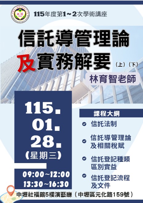 通知本會115年度第1~2次學術講座,請 踴躍參與(免事先報名)