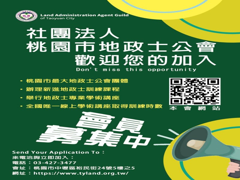 【轉知桃園市政府函】鍾o余等地政士(有效期限為115/01/13~115/06/30,內含名冊)地政士開業執照有效期限即將屆滿,為避免影響權益,請依限辦理換發或加註延長有效期限